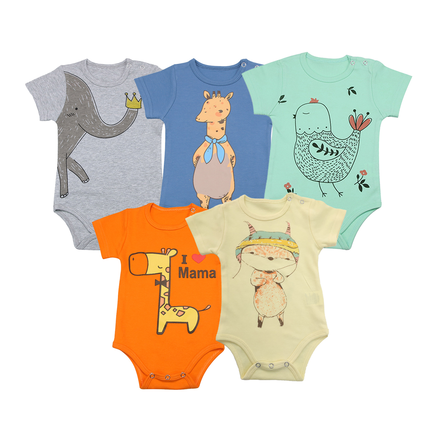 ✔ Package Includes: Baby Set of 5 Organic Short-Sleeve Bodysuits